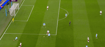 第55分钟,萨维尼奥鼓舞中送出直塞,哈兰德挑射破门,献技梅开二度!曼城3-0拉开比分差距。