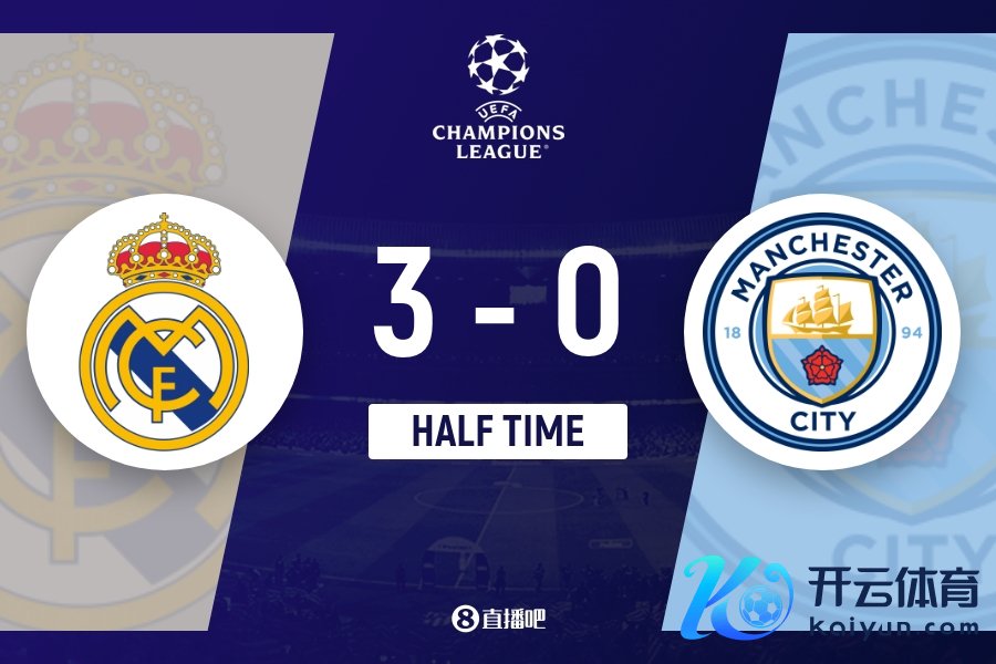上半场补时1分钟。半场战罢,皇马3-0曼城。