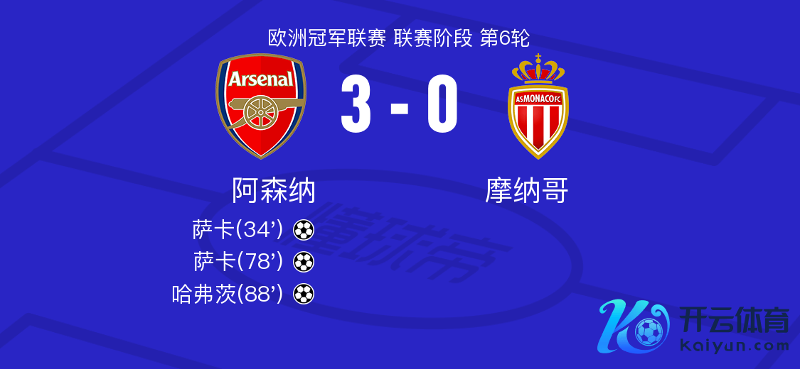 北京工夫12月12日阿森纳vs摩纳哥,萨卡获取全场最高的9.4分体育集锦,萨利苏获取全场最低的5.8分