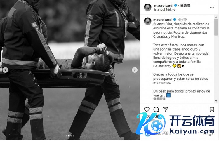 11月8日讯 加拉塔萨雷时尚伊卡尔迪更新社媒动态,阐述我方十字韧带扯破,并感谢球迷的怜惜。 伊卡尔迪在对阵热刺的欧联杯第四轮比赛中受伤,他在外交媒体上写谈:“上昼好,今天上昼的检考据实了最坏的音信,我的十字韧带和半月板扯破。” “我将休战数月,但我会面带含笑,勤奋康复,争取以更好的情状复出。我祝福我的队友和悉数这个词加拉塔萨雷群众庭渡过一个充满确立和得胜的赛季💛🦁” “感谢所联系心和作陪我的东谈主。给群众一个吻,我很快就会归来。” 体育录像/图片