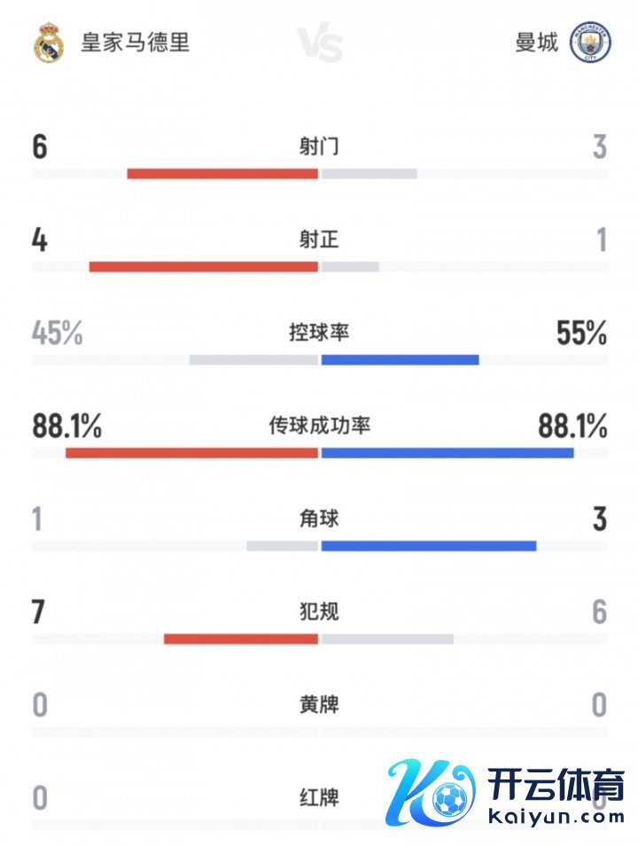 03月12日讯 皇马vs曼城半场战罢,皇马暂时3-0跳跃。具体数据如上图。